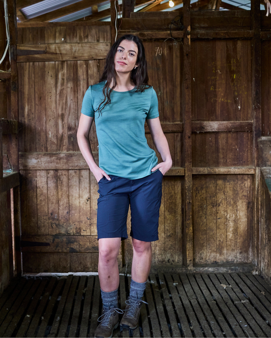 Women's Crew T-Shirt - 100% Merino Wool, Fern Green