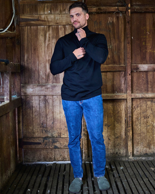 Men's 1/4 Zip Top - 100% Merino Wool, Black [PRE-ORDER: SHIPS NEXT WEEK]